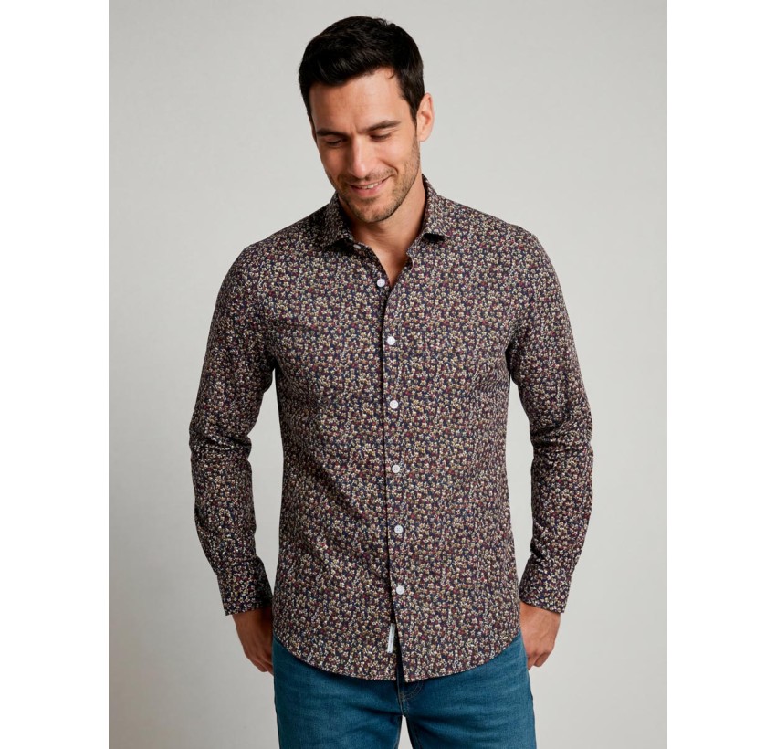Dale un giro a tus looks con esta camisa slim de estampado micro floral multicolor. Su diseño dinámico y lleno de matices aporta un estilo moderno y desenfadado, ideal para quienes buscan marcar la diferencia.
