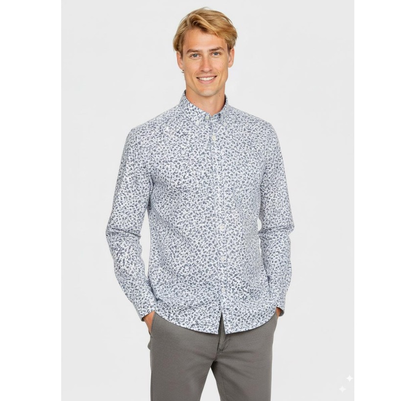 Una camisa versátil con un diseño actual que aporta un toque diferencial a tus looks diarios. Su patrón de micro puntos en contraste le da personalidad sin perder la elegancia de un básico.