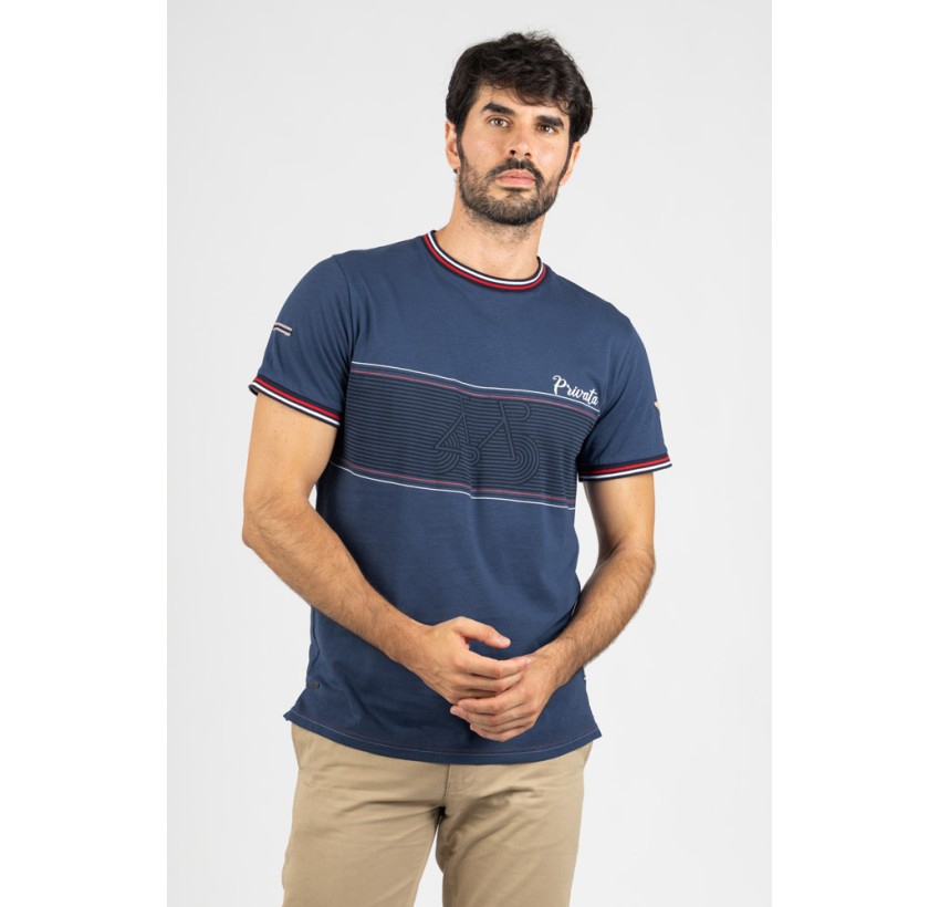 Camiseta con diseño frontal gráfico de inspiración deportiva, que aporta un estilo dinámico y moderno para el día a día.