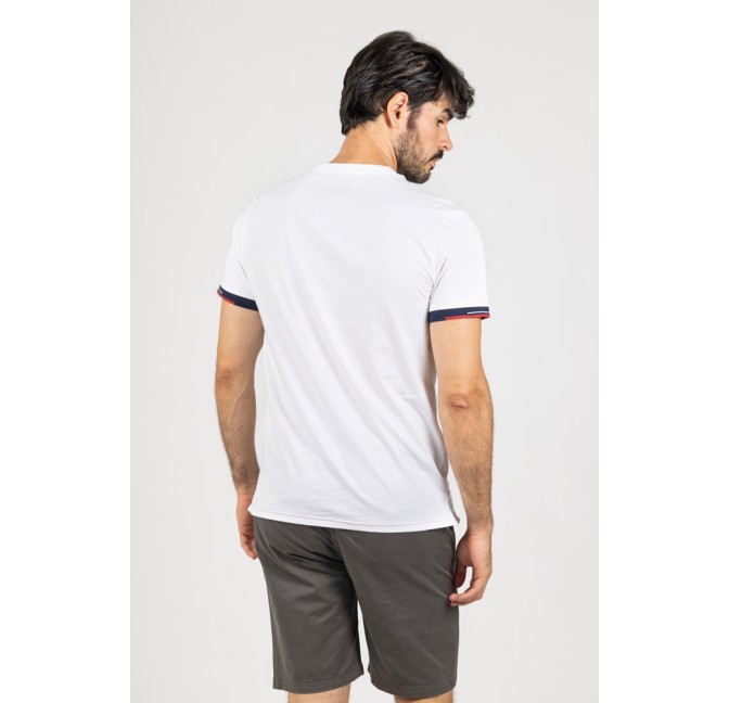 Mangas con puños ribeteados en contraste en color azul marino y rojo, que aportan un toque distintivo. Incluye detalle exclusivo de marca en la manga.