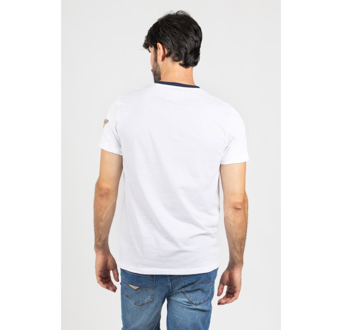 Cuello redondo a contraste en color azul marino, que aporta un toque distintivo. Tejido suave y ligero que garantiza confort durante todo el día.