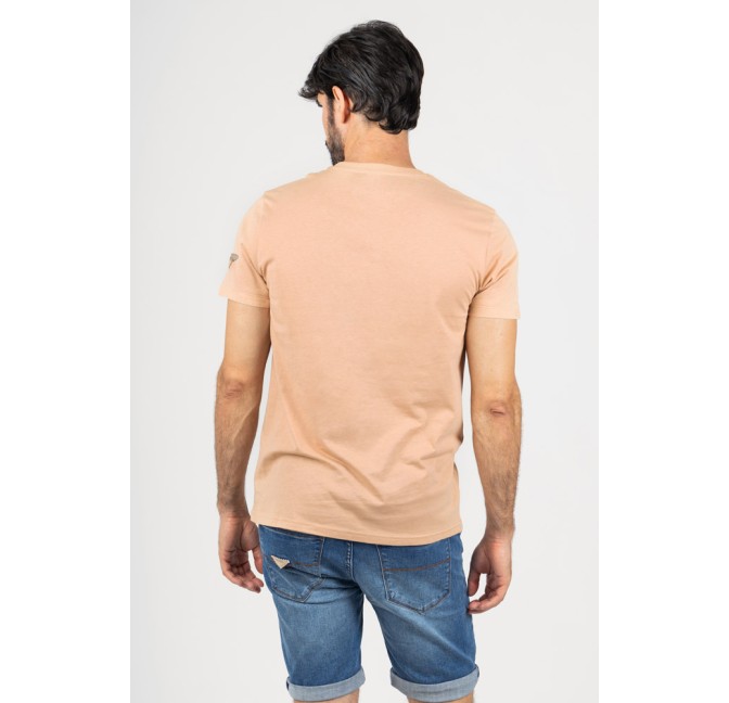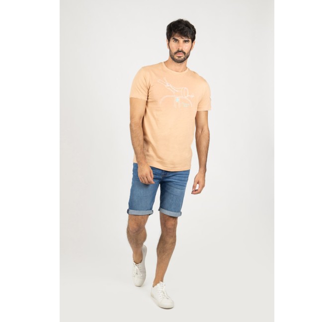 Camiseta en tono mandarina con estampación frontal de inspiración motera, ideal para un look casual con carácter.