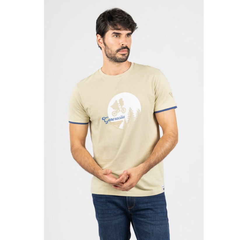 Camiseta en tono beige con estampación frontal de inspiración aventurera, un diseño que evoca libertad y espíritu outdoor.