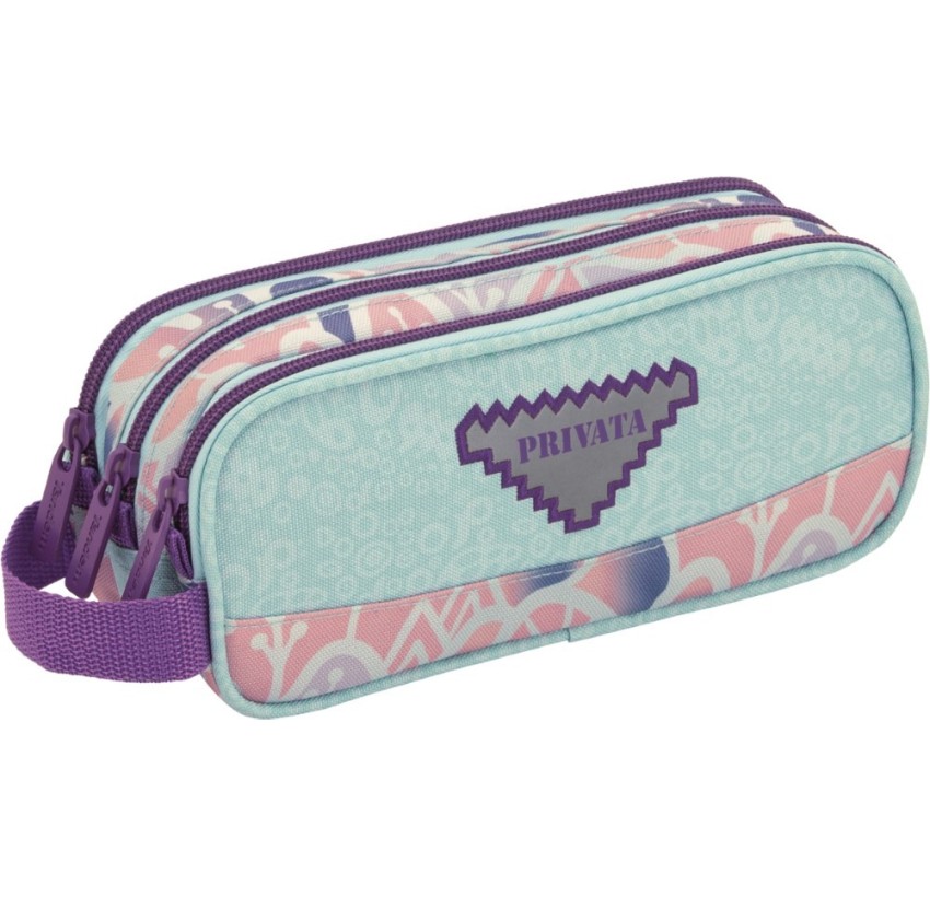 • Estuche con tres cuerpos independientes de apertura con cremallera. Con asa lateral para facilitar su portabilidad. Ideal para transportar los útiles escolares organizados y clasificados por uso. Gracias a su tamaño es fácil de transportarlo dentro de mochilas y bolsos.