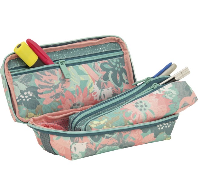 • Estuche escolar portatodo de gran capacidad con 4 estuches interiores que pueden extraerse fácilmente mediante un sistema con velcro.