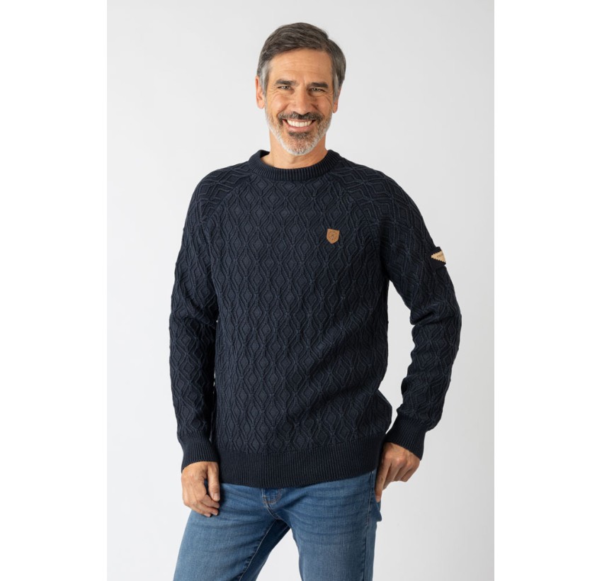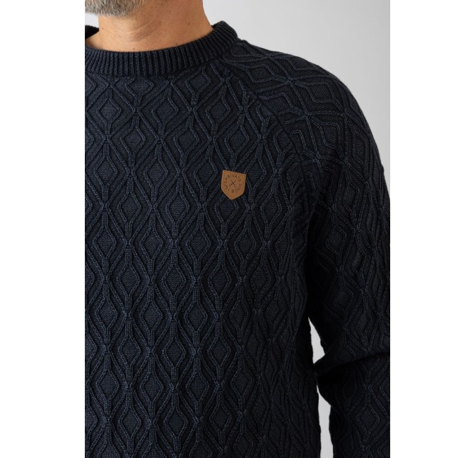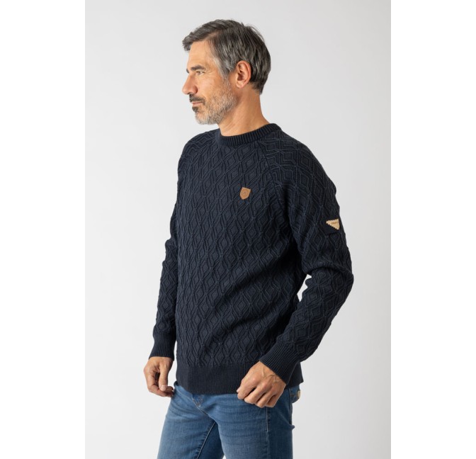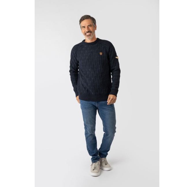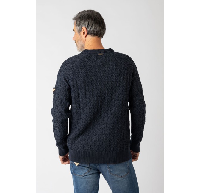 Siente el espíritu Privata con jersey cuello redondo, tejido confortable y agradable. Con diferentes texturas en la parte frontal , tejido lavado dándole una apariencia dieferente.
