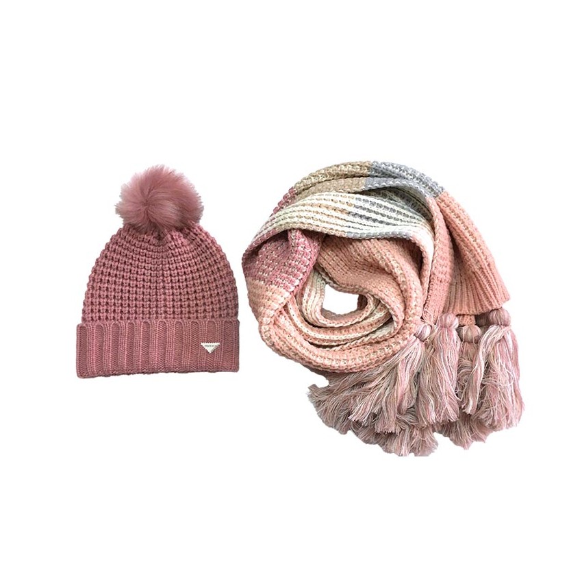 Conjunto de señora de gorro y bufanda en color Rosa Palo
