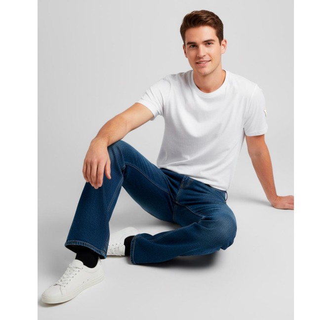 Vaquero en tono denim medio confeccionado en tejido resistente con un ligero tacto suave, ideal para un uso continuado.